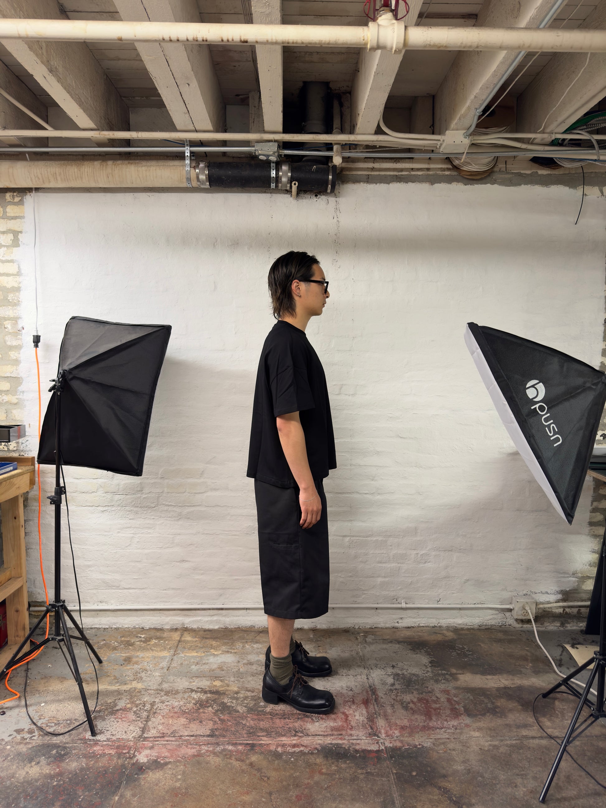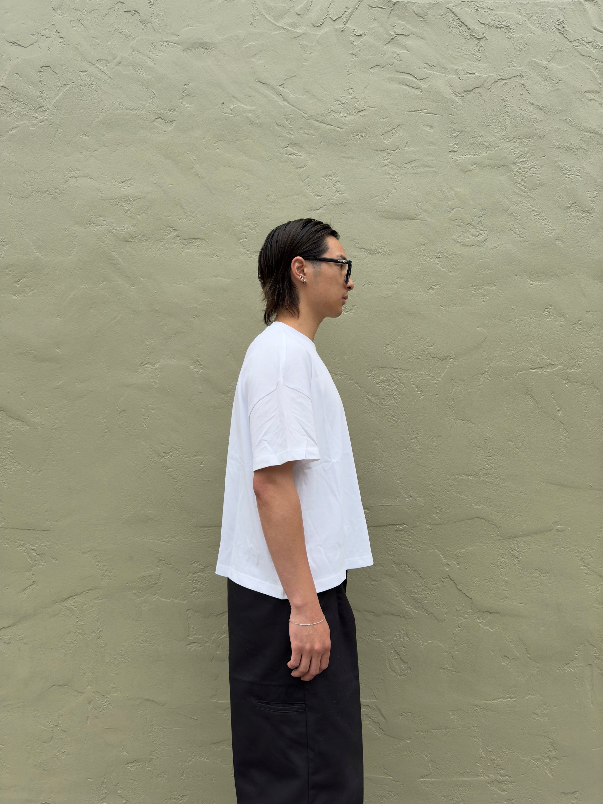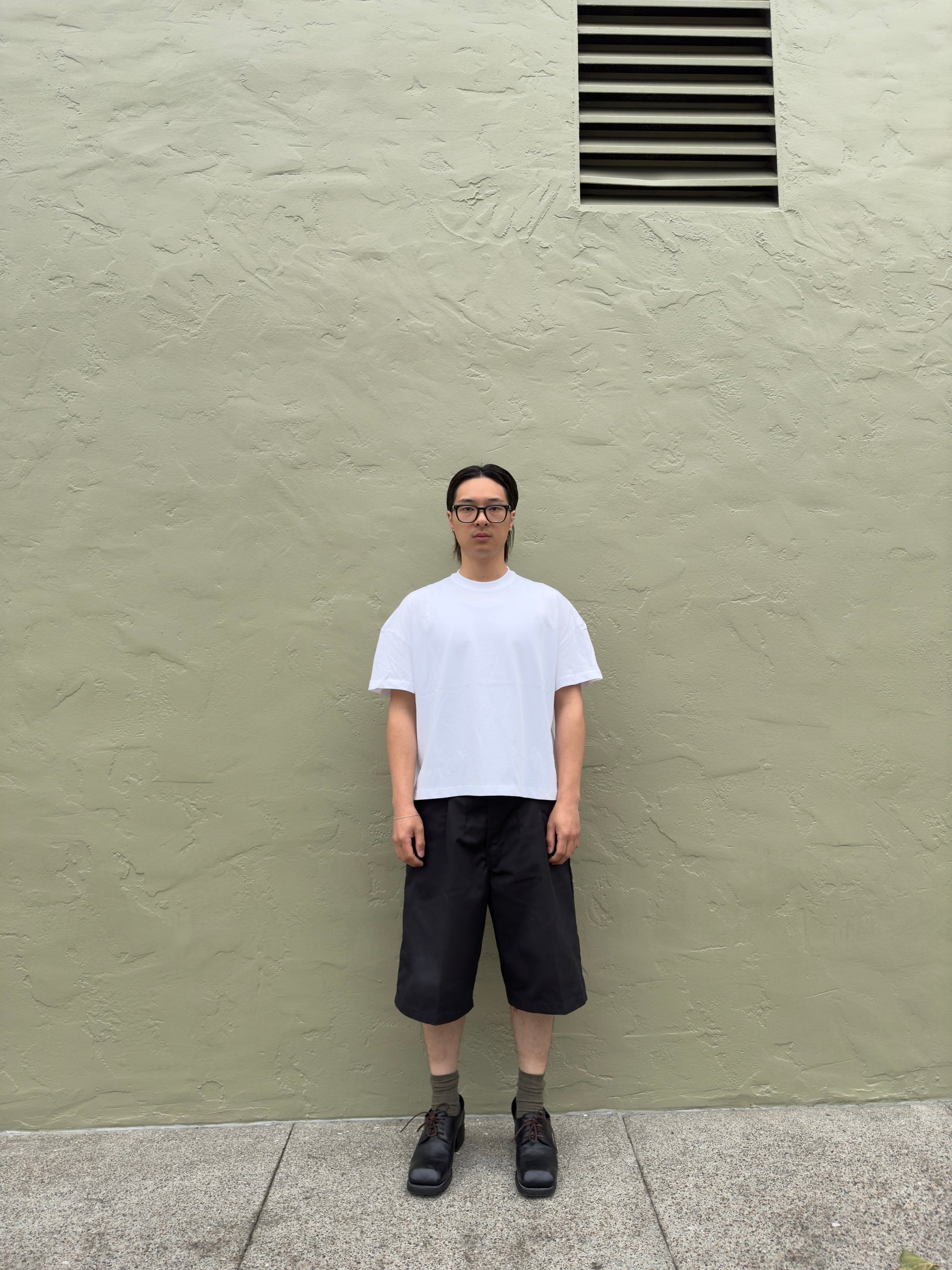 This tee features equal length and width for a true boxy fit. The design allows the garment to drape differently on each body type. We’ve incorporated drop shoulders while ensuring the sleeves don’t extend past the elbow for most wearers, maintaining a more proportionate look for the upper body. Wear it. You can do anything with it - go bananas.